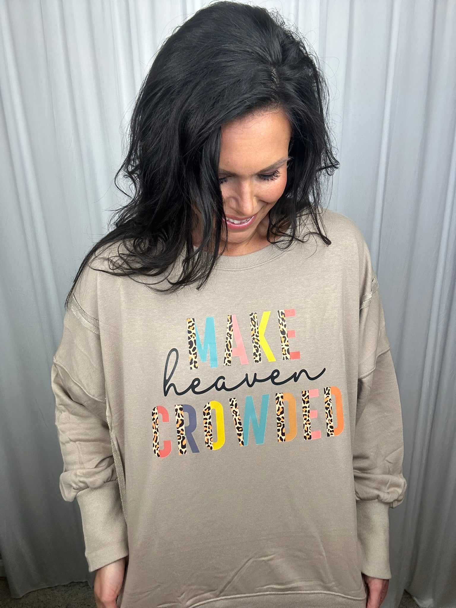 Make Heaven Crowded Sweatshirt Embrace comfort with an expert-crafted oversized sweatshirt that delivers both style and substance. This piece features a relaxed, generous fit that works beautifully layered or worn solo, making it a versatile addition to any wardrobe. The quality construction ensures durability through countless wears, while the spacious silhouette provides the ease of movement today's lifestyle demands. Perfect for those who appreciate thoughtful design paired with everyday wearability.