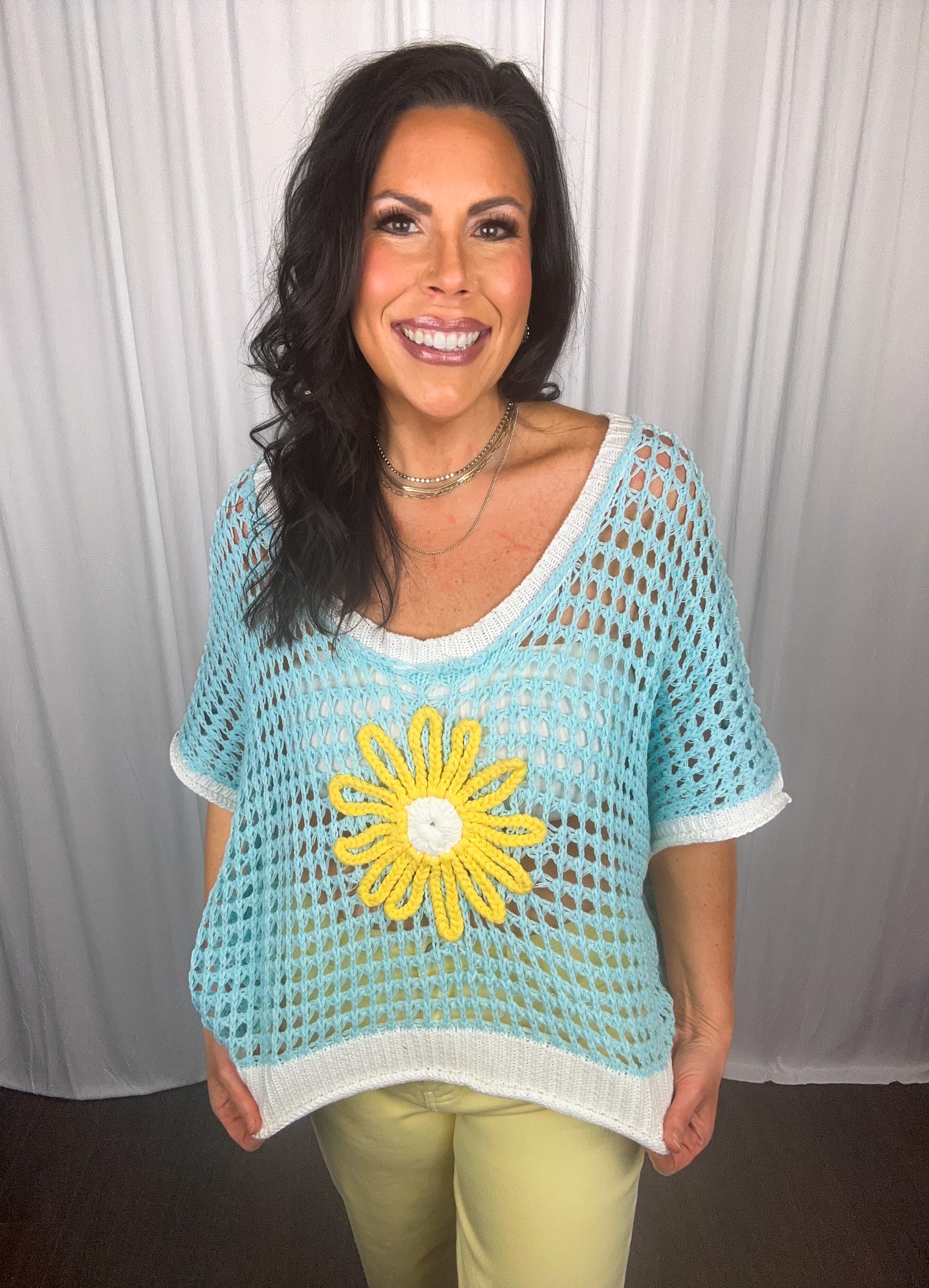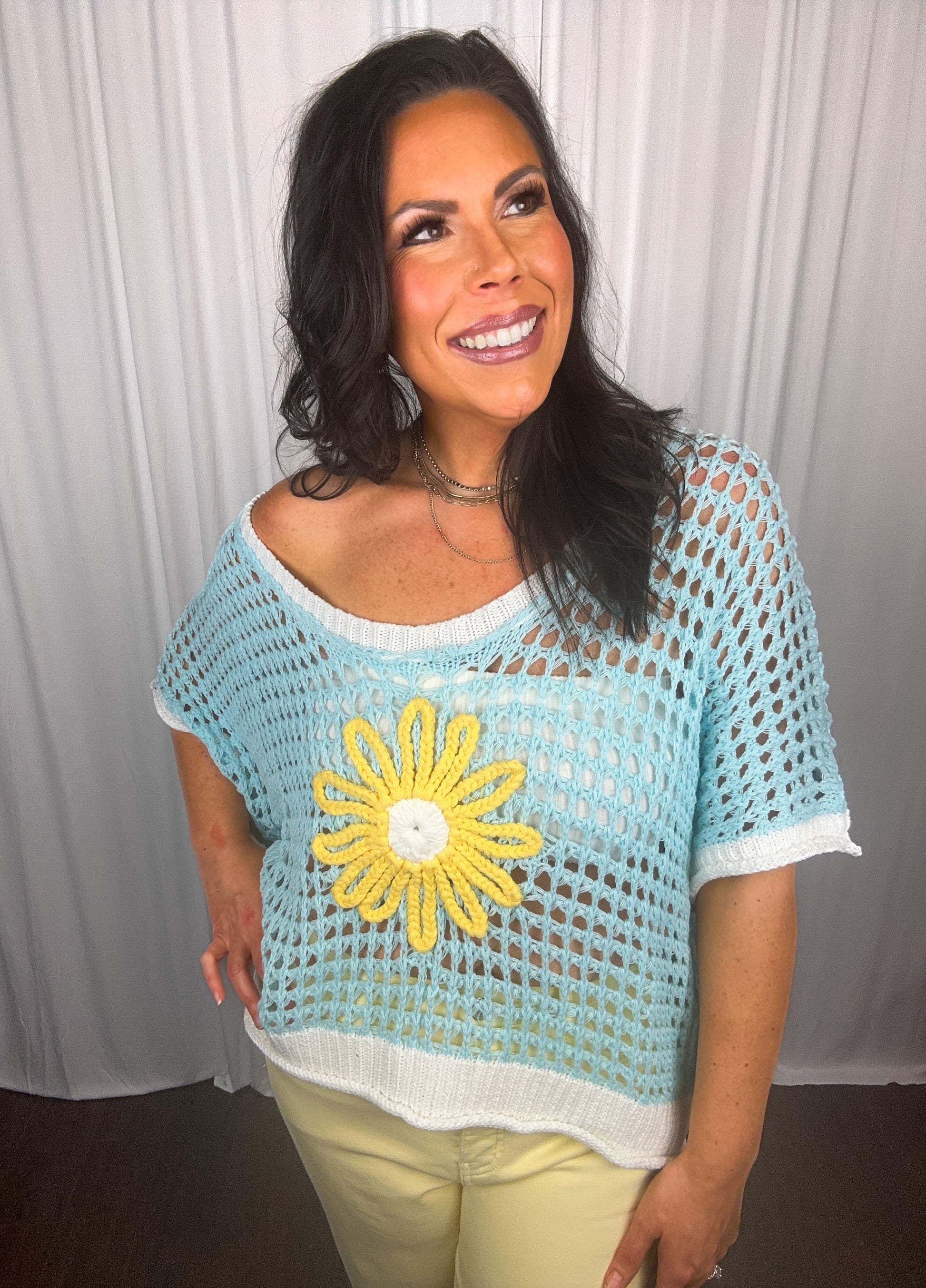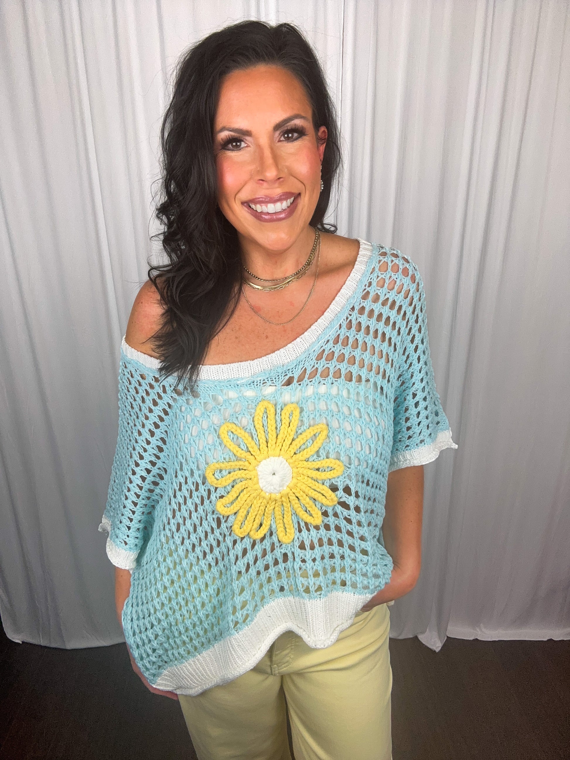 Expertly crafted for ultimate comfort and style, our oversized, drop shoulder floral sweater is a must-have for your summer wardrobe. Made with high-quality fabric, this sweater will keep you cool and chic all season long. The perfect blend of fashion and function.